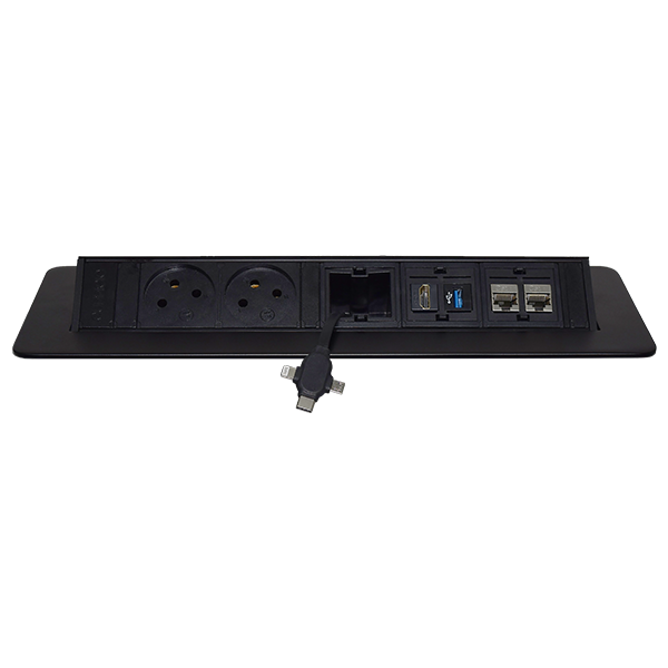 Innera Leisure, a fancy in table power station operated by soft press mechanism. Getting immediate access to power and data while keeping high quality feel and modern sleek design. The Innera Leisure is ideal for meeting room tables to be part of every surrounding: from offices, meeting rooms, convention halls ,call centres, restaurants, hotels, labs, hospitals and many more. INSTALLATION CONFIGURATIONSIn Desk /In Table it mainly being placed in meeting room table, conference tables, desk and fine surfaces. Seating it can be Installed on the surface of almost any seating systems such as sofas, couches, chairs, waiting benches, auditoriums, and more. providing great hidden solution with close & convenient access to power, charge, data and Telecom connections.